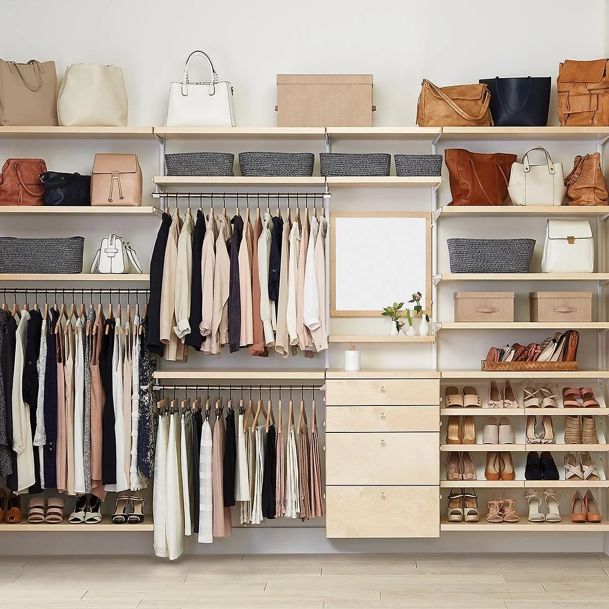 No two spaces are the same — and neither are your needs. Elfa offers endless configuration options, allowing your system to be built exactly how you want it. Every shelf, drawer, and rod is fully adjustable, so your design can evolve as your life does.